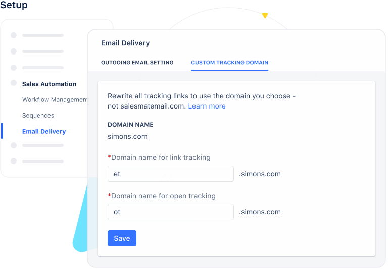 Now, with Salesmate’s exclusive update, you get to create a custom domain tracking URL for tracking your outgoing emails. So, how does the custom tracking domain help your company? Generally, Salesmate uses a default domain for tracking email clicks and opens, and although it fetches the same results, there are certain additional benefits of using a custom domain.