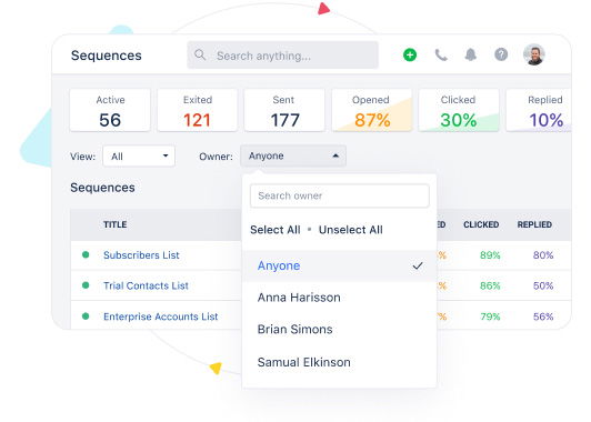 You can seamlessly filter sequences using the owner filter within your Salesmate CRM.