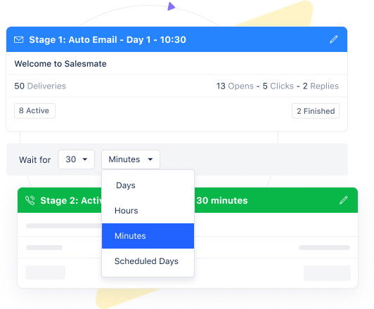 Drop emails after hours/minutes or on a fixed day with relative sequences. You can now create multiple stages of a sequence that will send emails in the span of minutes or hours to get a quick response from the customer.
