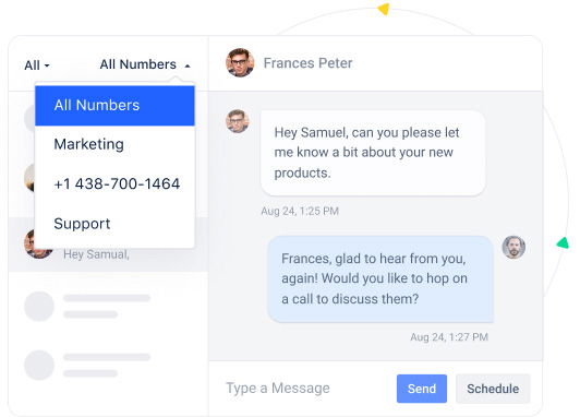 Want to see how your team is performing? Now you can view the number of text messages made from a specific number. Filter the text messages by users or various departments and easily manage the conversations.