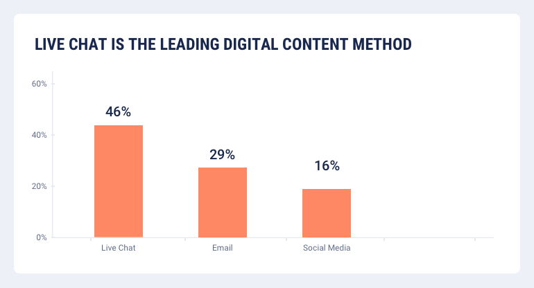 The best feature of live chat is that it helps you provide immediate assistance to your visitors. In fact, 79% of customers share that they prefer to communicate via live chat because of the immediacy it offers. And that’s something that you certainly shouldn’t neglect. Live chat is currently the most preferred mode of communication among consumers.