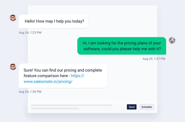 For your ease of use, the entire chat history is saved in live chat, so when you’re moving the deal through the pipeline, and your sales rep wants to get a better understanding of the customer’s requirement, they can also access the conversation history and offer a better value proposition.